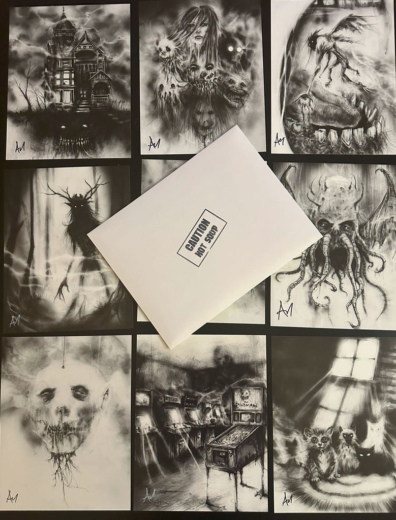 PLUS! - For a limited time, our 2025 special edition holiday art print, "Nightmare Santa" (8.5 x 11 on premium cardstock) AND a bonus mystery art print of the same quality.